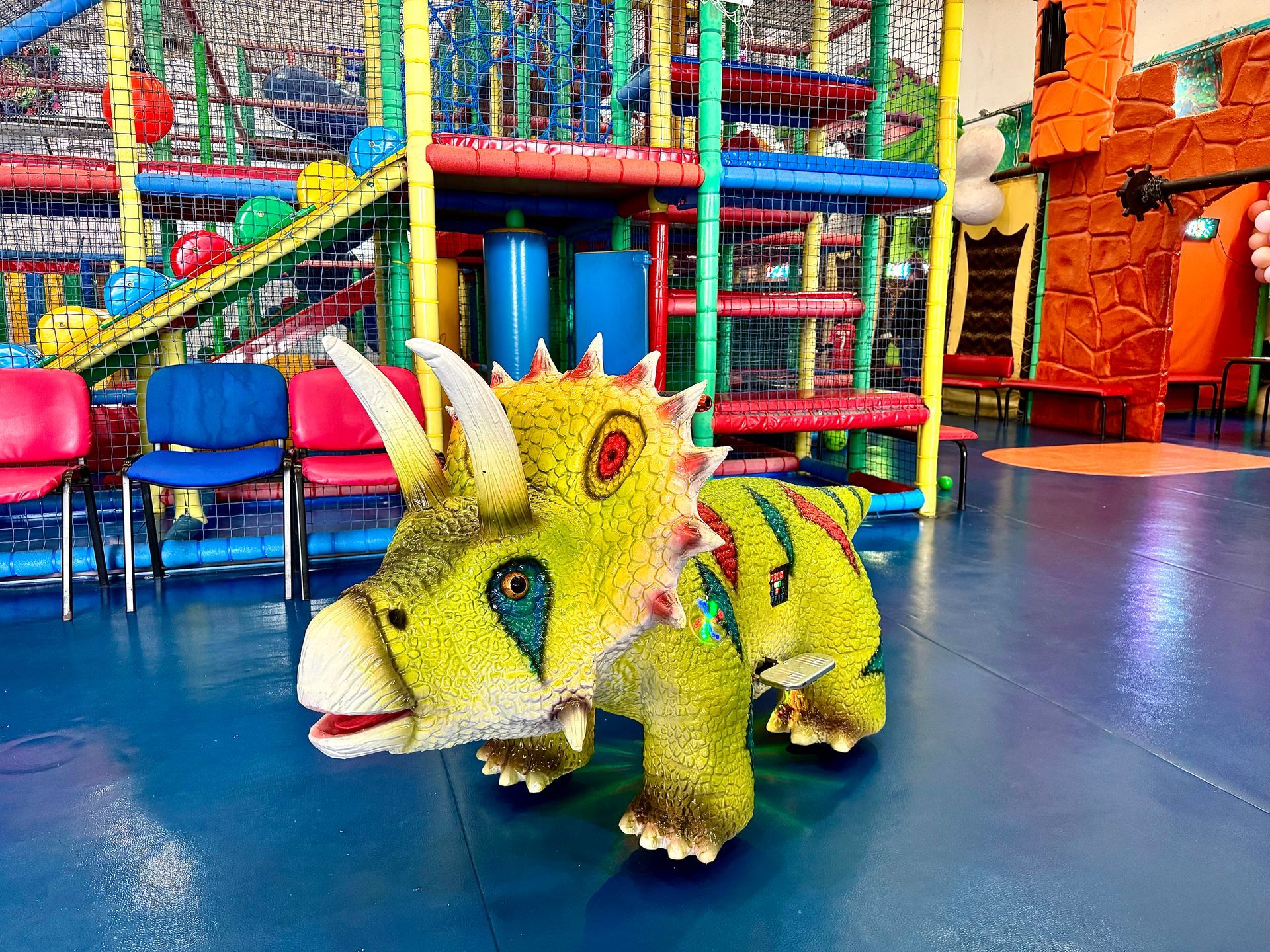 The walking dinosaurs allow children to hop on and enjoy a fun ride around the park.