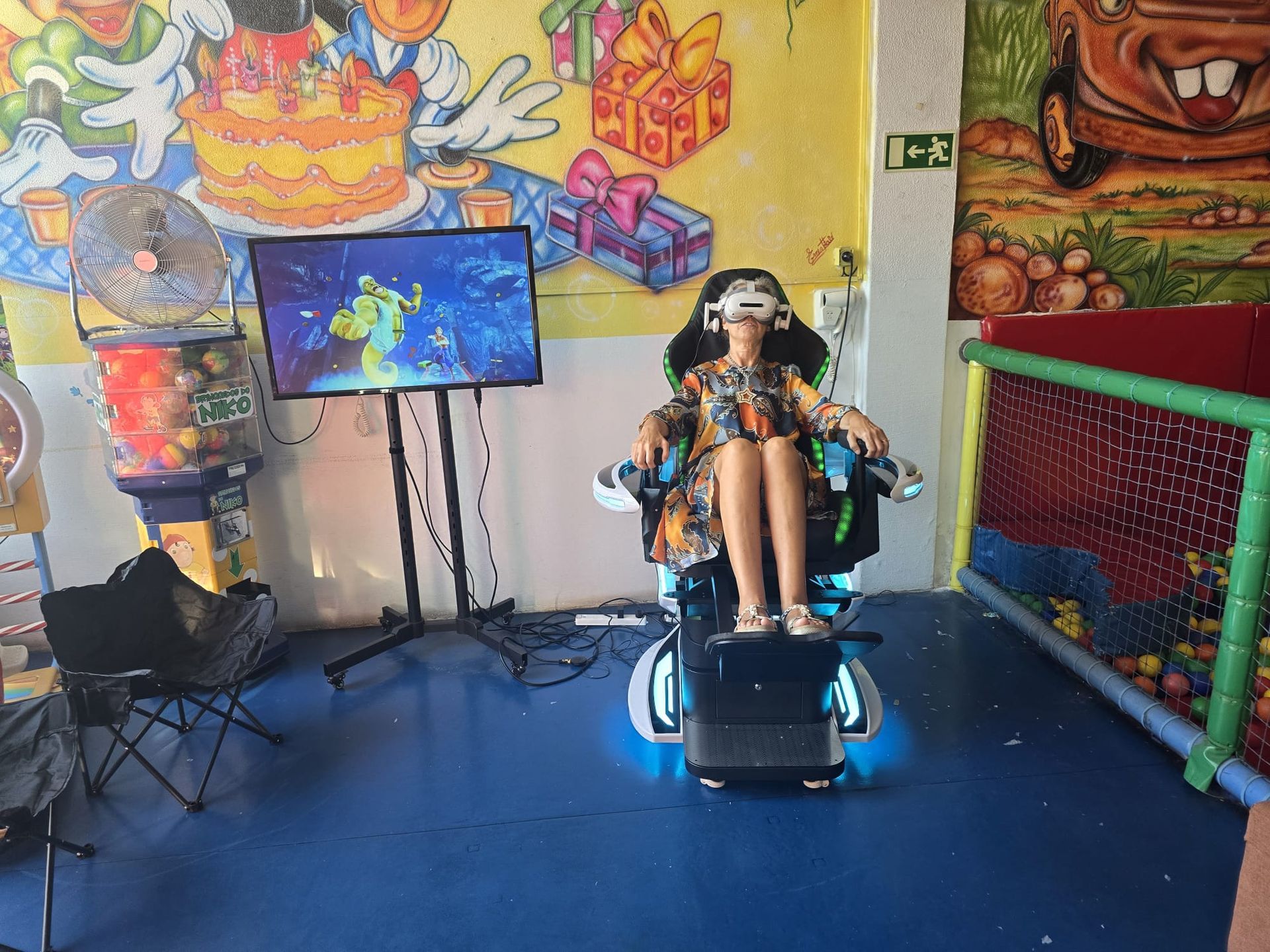 Sit down on achair that movesand immerse yourself in a virtual world full of colors, challenges, and emotions — all inAugmented Reality.