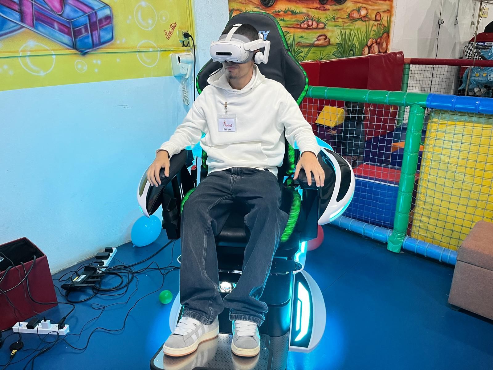 Senta-te numa cadeira que se move e mergulha num mundo virtual cheio de cores, desafios e emoções — tudo em Realidade Aumentada.